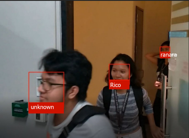 For this test, there are three persons entering in the premises. Only two person has a given name in the system and the other one has not in the system. The system recognizes the 2 individual and the other is the unauthorize person entering in the premises.
